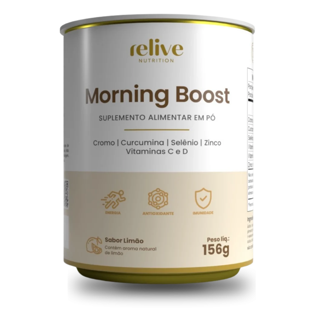 Relive Morning Boost é o suplemento ideal para quem busca mais energia, disposição e vitalidade para enfrentar os desafios do dia a dia. Com sua fórmula completa e ingredientes de alta qualidade, ele oferece benefícios para a saúde e bem-estar, te ajudando a conquistar seus objetivos e viver uma vida mais leve e saudável.